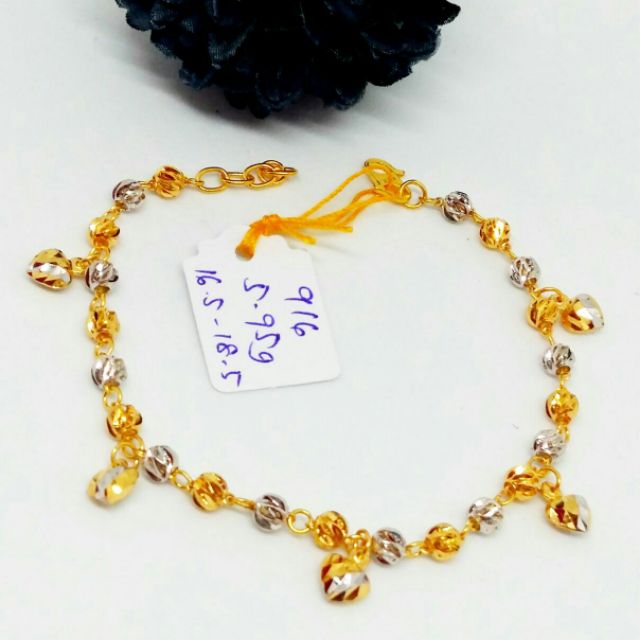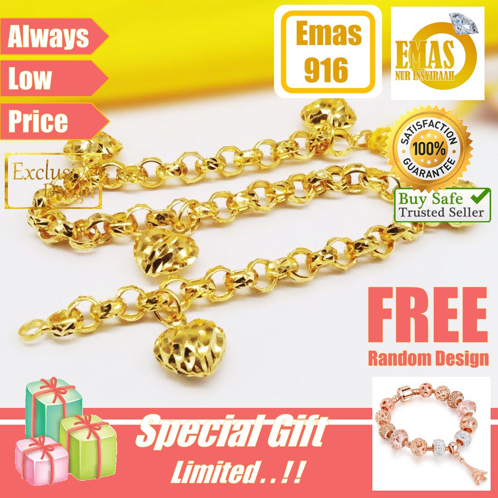Rantai Tangan Lipan Love Gantung Emas 916 Tulen Shopee Malaysia