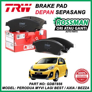 Perodua Myvi D20n 2018 Front Brake Pad Dtec Premium Ceramic Series Trw Auto Accessories On Carousell