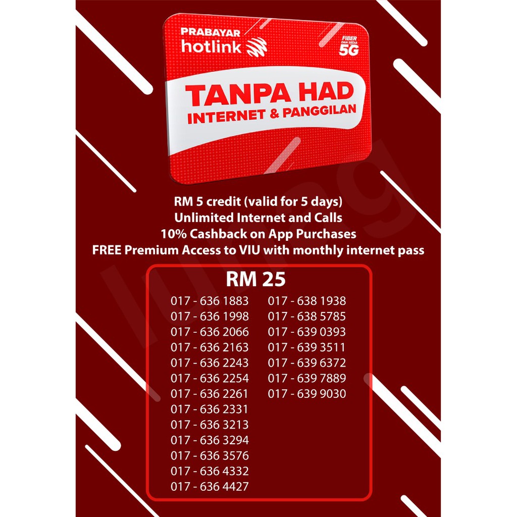 Hotlink Unlimited Prepaid Sim Card Number 5g Credit Rm5 Shopee Malaysia