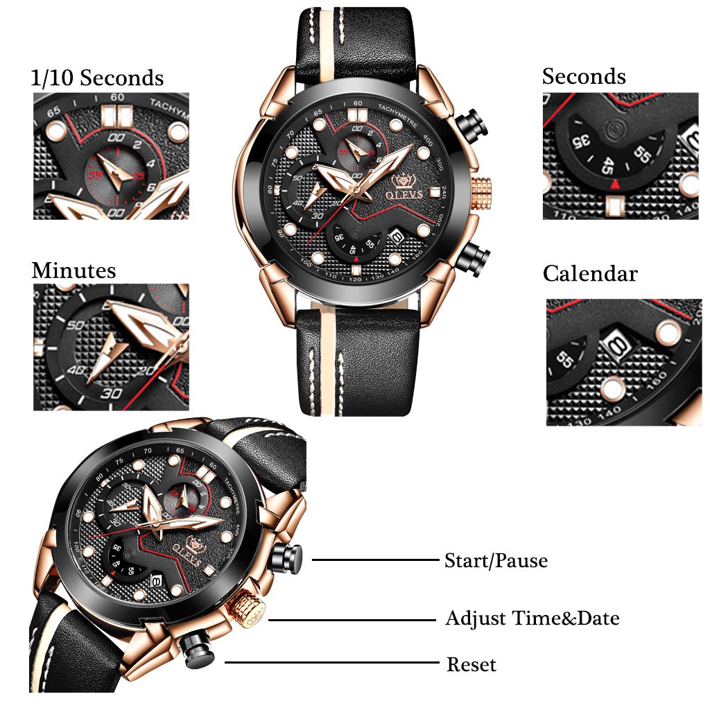 Olevs Business Men Watch Date Black Men S Leather Watches Men Watch Chronograph Luminous Male Wristwatch Jam Tangan Lelaki Tali Kulit Jam Tangan Cowok Kalis Air Jam Lelaki Berjenama Remaja Jam Tangan Lelaki